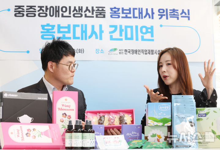【フォト】重度障害者生産品広報大使の委嘱を受けたカン・ミヨン(7/18)