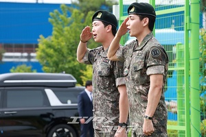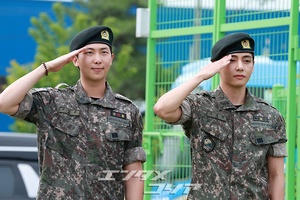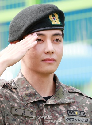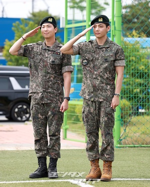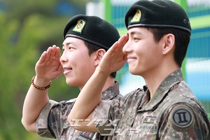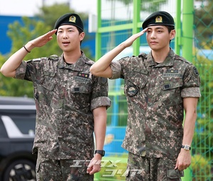 【フォト】BTS・RM & V りりしく敬礼「除隊を命じられました」(3/13)