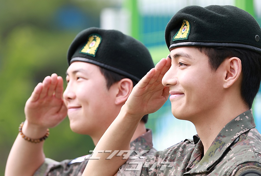 【フォト】BTS・RM & V りりしく敬礼「除隊を命じられました」(10/13)