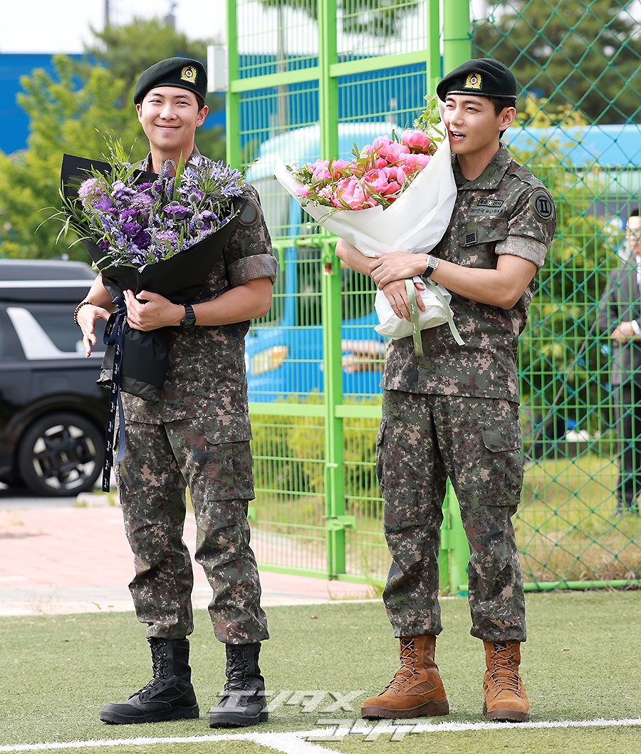 【フォト】BTS・RM & V 除隊祝う花束手に明るい笑顔(11/20)