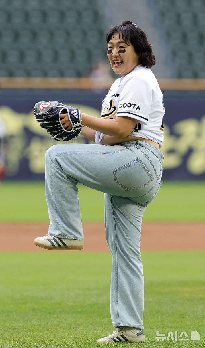 【フォト】始球式をするお笑いタレントのイ・スジ /ソウル(3/5)