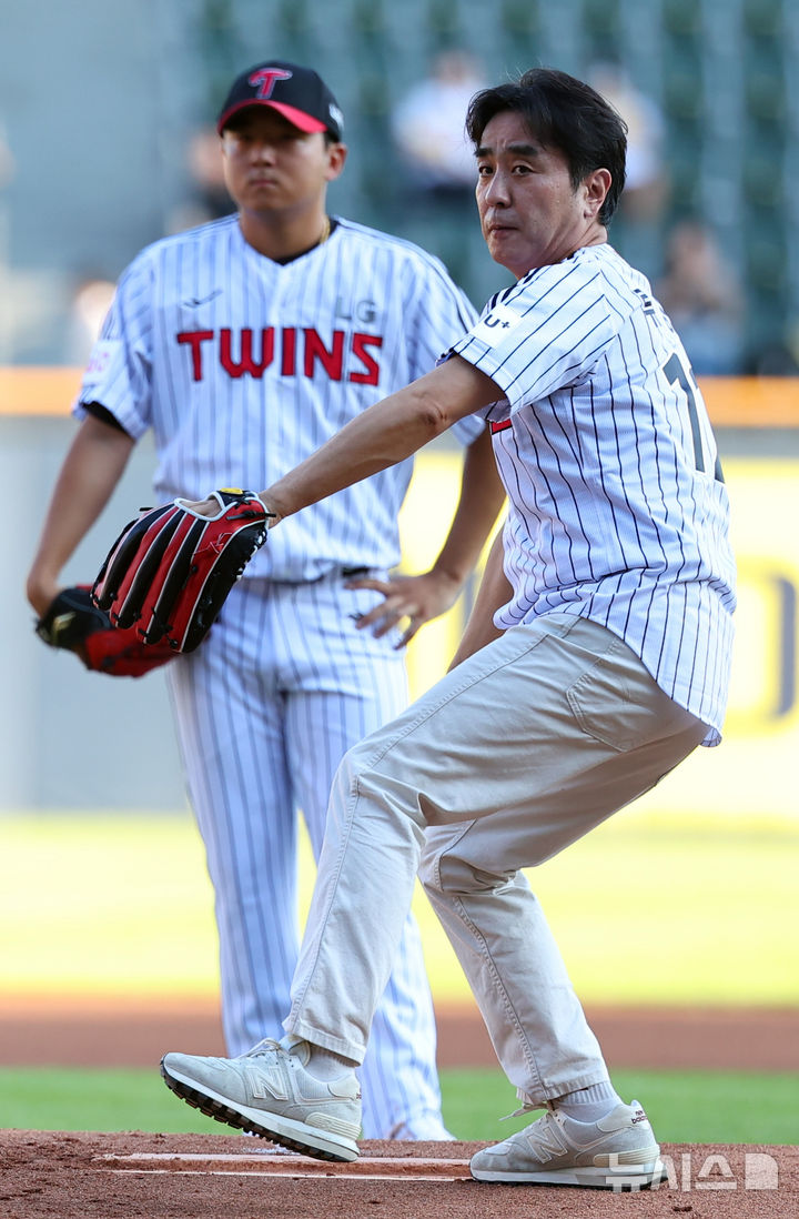 【フォト】 LGツインズ戦で始球式をする俳優リュ・スンリョン(2/11)