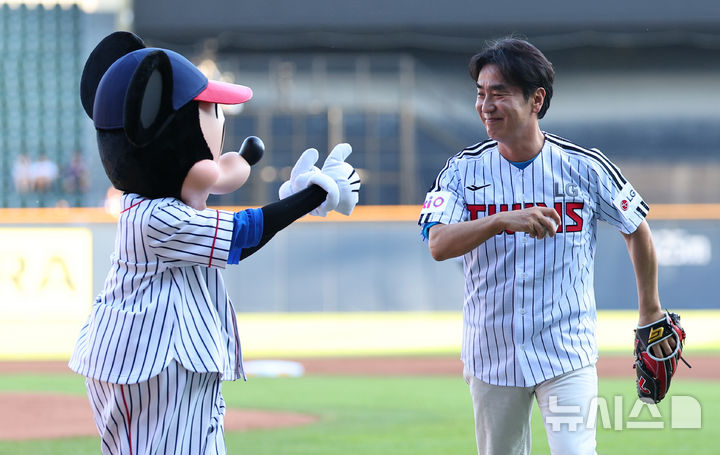 【フォト】 LGツインズ戦で始球式をする俳優リュ・スンリョン(4/11)
