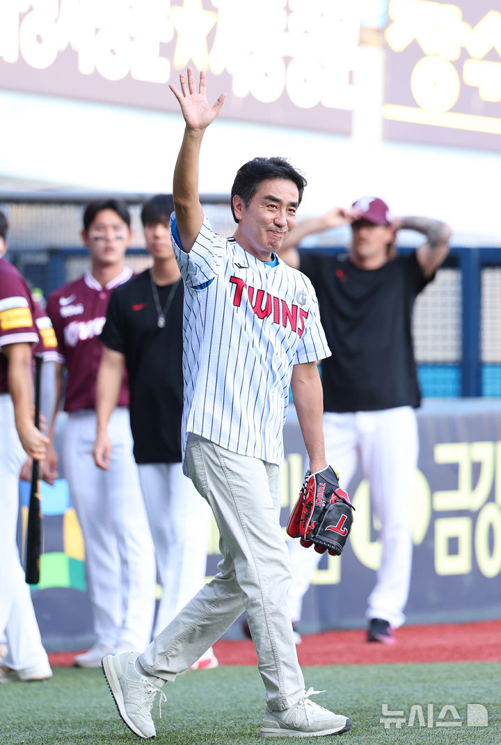 【フォト】 LGツインズ戦で始球式をする俳優リュ・スンリョン(8/11)