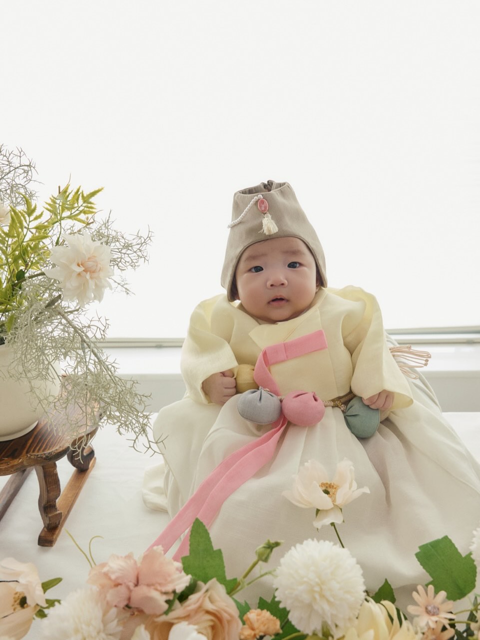 ソン・ダムビの娘ヘイちゃん生後100日目…かわいい韓服姿「今のまま元気に育って」