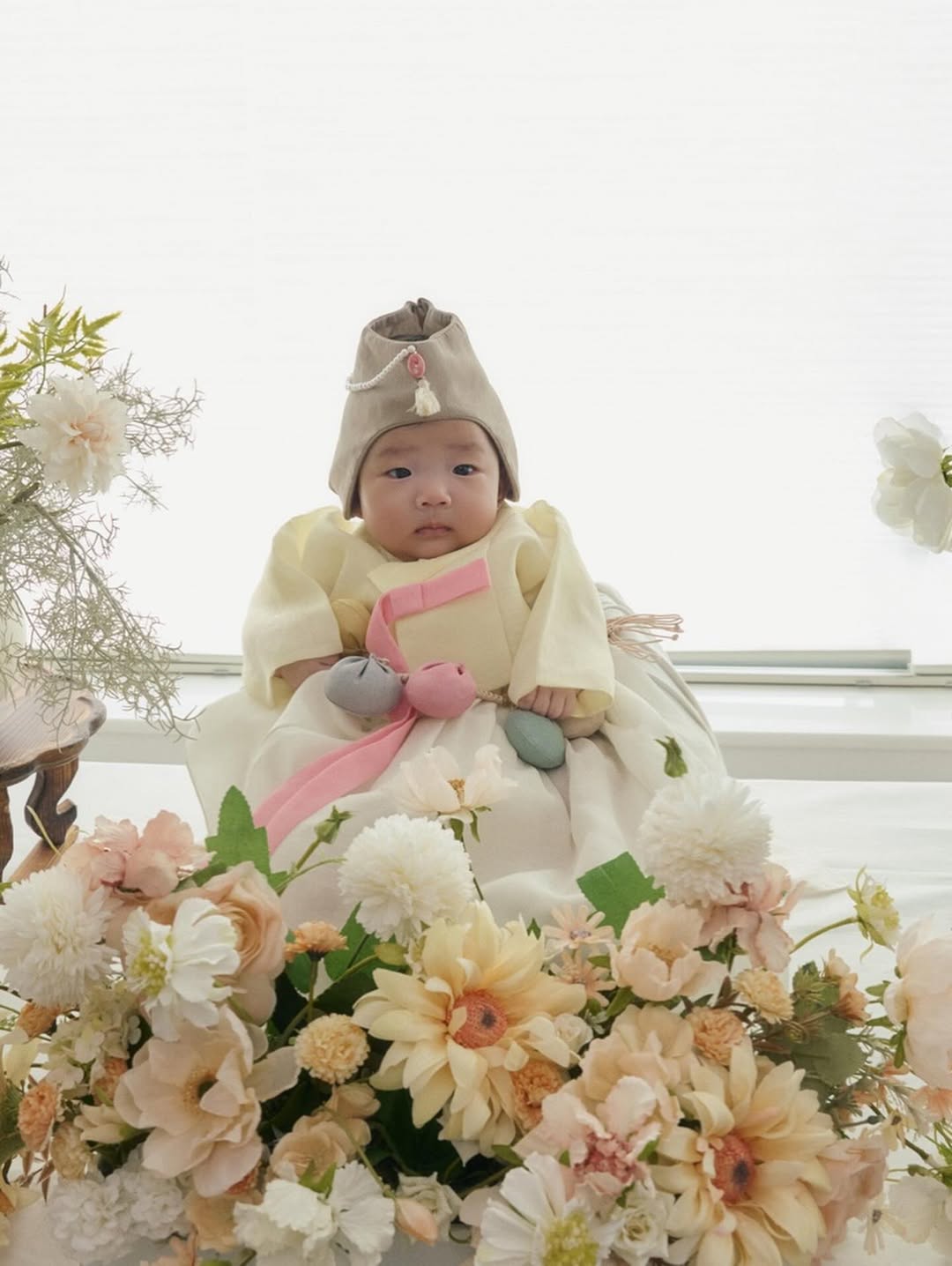 ソン・ダムビの娘ヘイちゃん生後100日目…かわいい韓服姿「今のまま元気に育って」