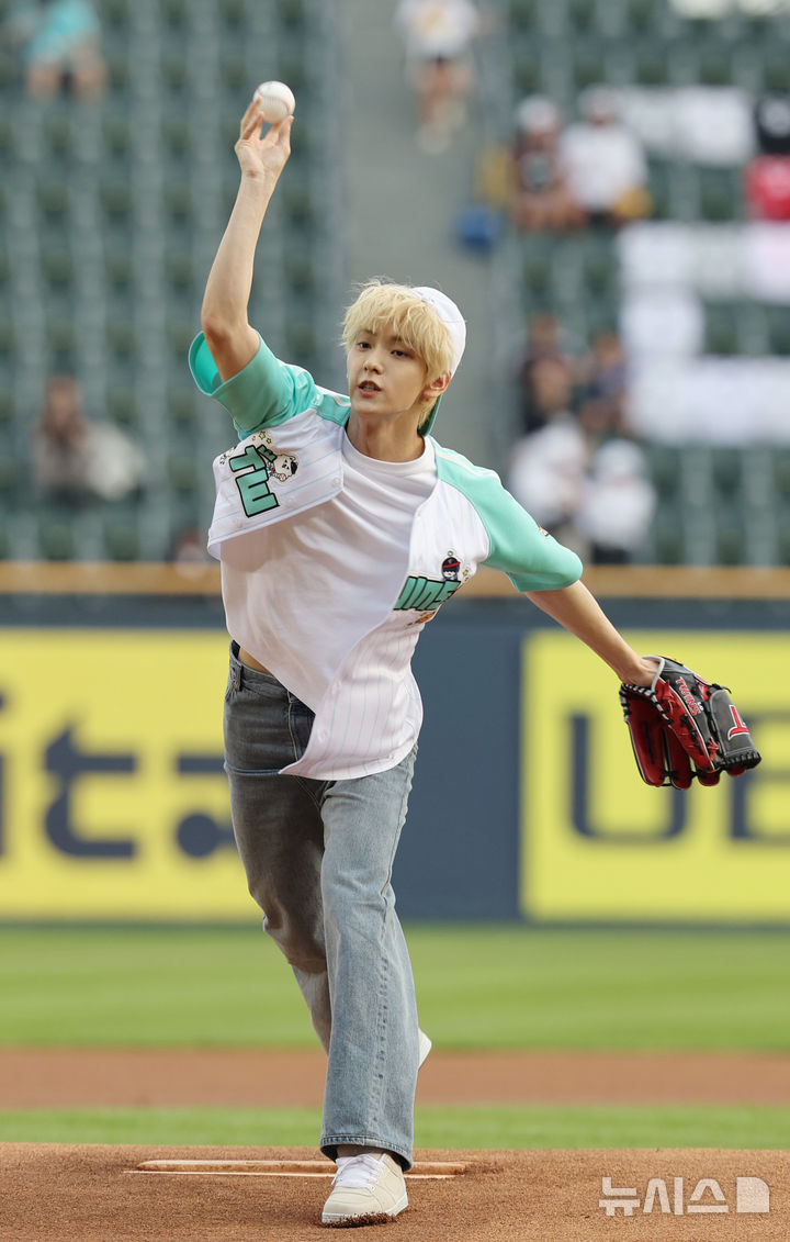 【フォト】TXTスビン「金髪プリンス」完璧な始球式 /ソウル(3/8)