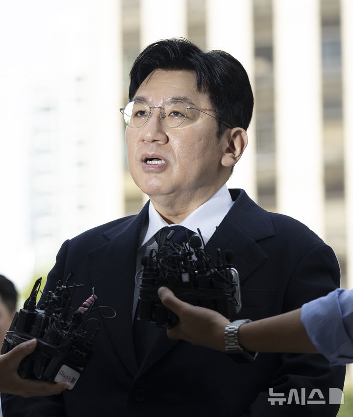 【フォト】パン・シヒョクHYBE議長が出頭、不正取引疑惑めぐる捜査で(7/15)