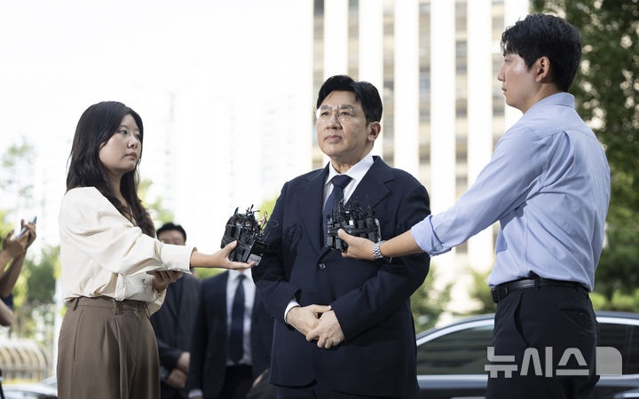 【フォト】パン・シヒョクHYBE議長が出頭、不正取引疑惑めぐる捜査で(9/15)