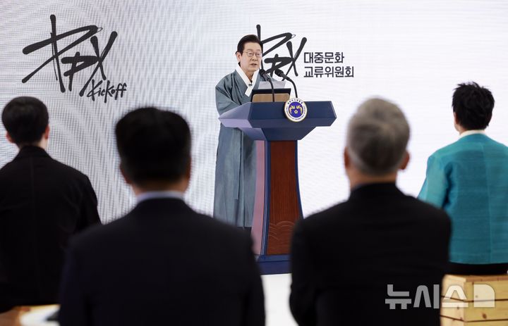 【フォト】李在明大統領、大衆文化交流委共同委員長を務めるJ.Y.Parkと共に(7/10)