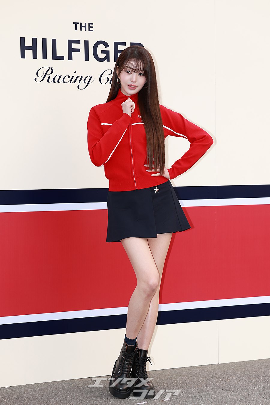【フォト】IVEウォニョン、赤いジップアップパーカー&黒い超ミニスカートがキュート(2/36)