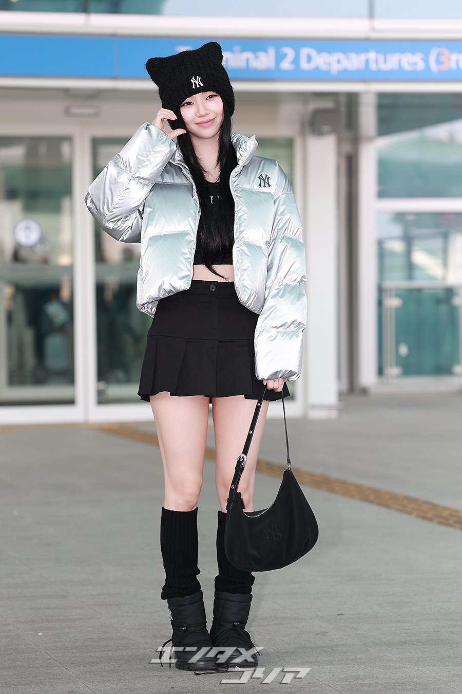 【フォト】aespaカリナ 猫耳ニット帽子+超ミニスカで日本へ(1/15)