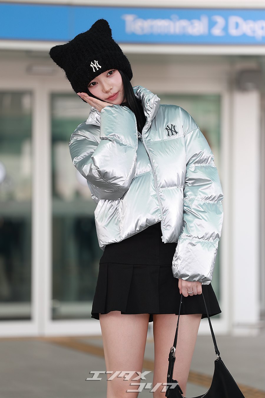 【フォト】aespaカリナ 猫耳ニット帽子+超ミニスカで日本へ(12/15)
