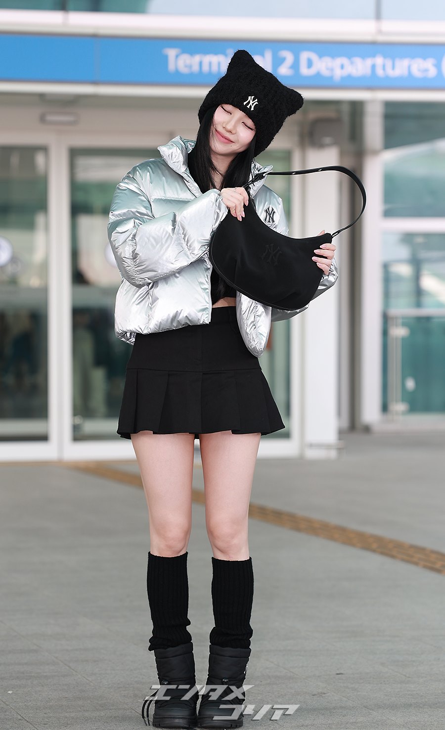 【フォト】aespaカリナ 猫耳ニット帽子+超ミニスカで日本へ(9/15)