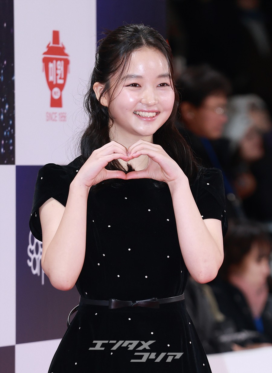 【フォト】黒ドレス姿のチェ・ユリ、さわやかにハートのポーズ=青龍映画賞(4/10)