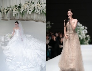 【フォト】ハム・ウンジョン、挙式での上品なドレスと第2部の華麗なドレスでまぶしい美しさアピール(1/20)